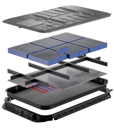 - Battery Pack: Penyimpan energi utama berbasis Lithium-Ion. Material: PP, PBT, PA66 untuk casing & isolasi